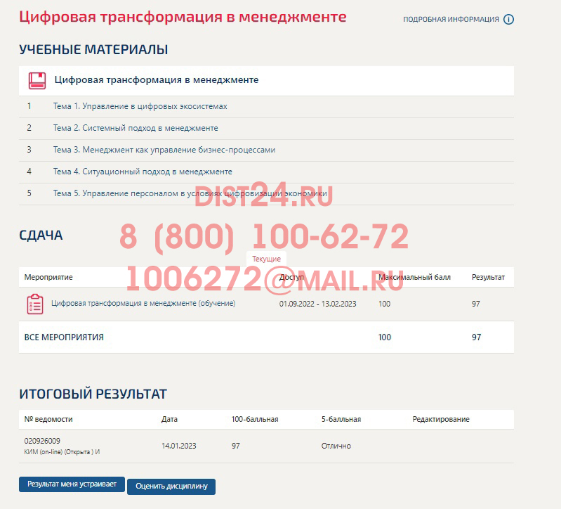 Мы предлагаем широкий спектр услуг для студентов Синергии, которые нуждаются в помощи в дистанционном обучении. Вот некоторые из наших услуг: - Написание дипломных работ, курсовых, рефератов и других научных работ - Помощь в написании отчетов по практике - Помощь в выполнении тестов и контрольных работ - Сессия под ключ Вся работа выполняется профессиональными писателями, которые имеют высшее образование и большой опыт в написании научных работ. Мы гарантируем качество и уникальность каждой работы, а также соблюдение всех сроков.Заключение